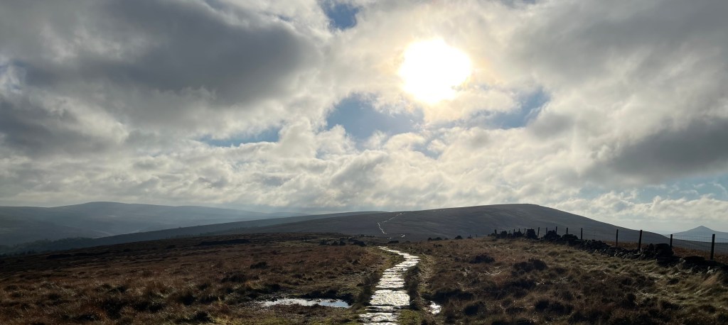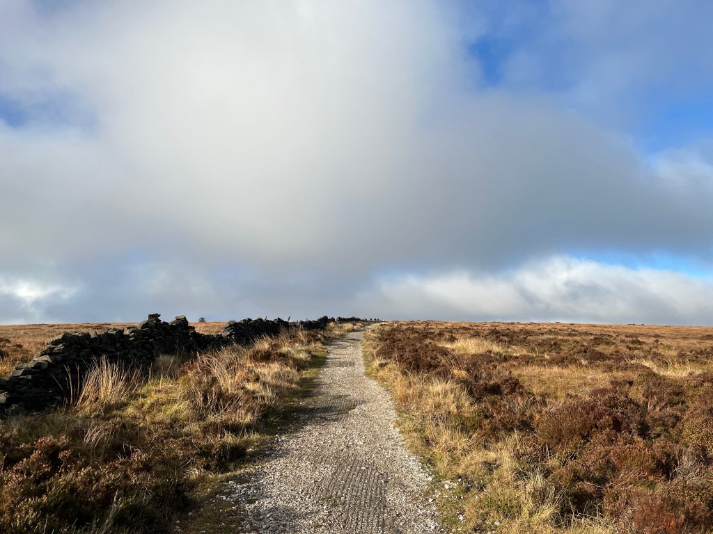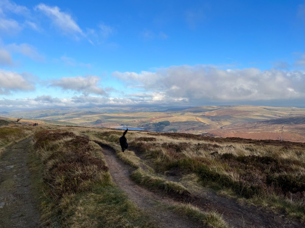 The circular walk continued across to join a sweep of a path that goes from the Errwood Reservoir to the Cat and Fiddle distillery halfway between Buxton and Macclesfield. The sun came out, Sid ran out of dogs who tried to savage him and it was back down to the start.