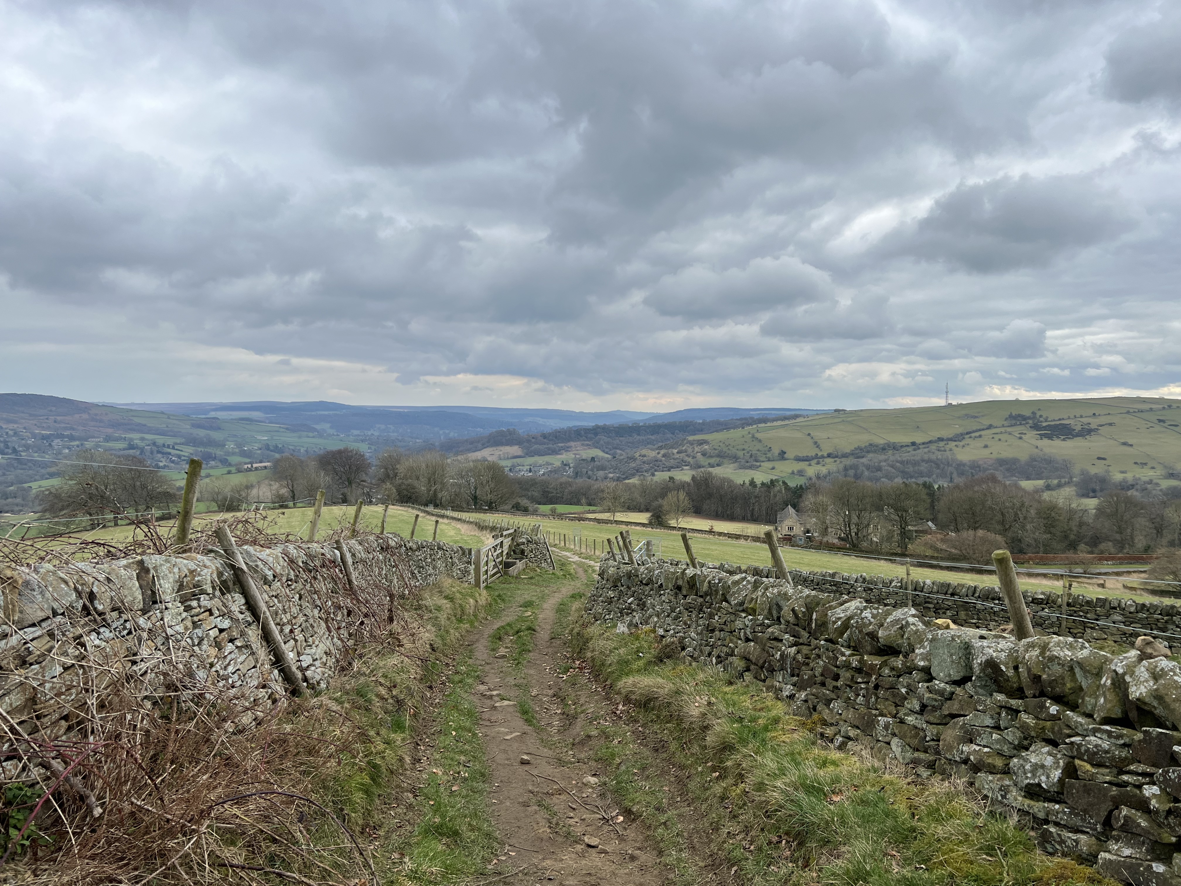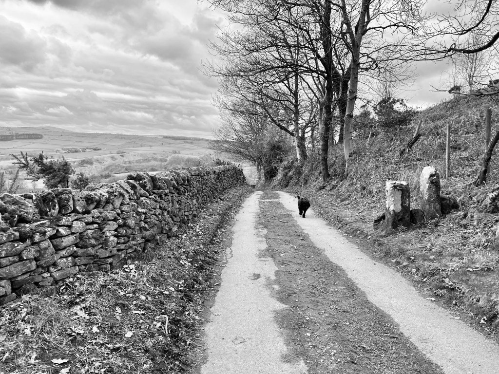 Practicalities: 3.5 mile well signposted walk. Park in museum car park then walk back to village square to pick up the signpost. Only one sheep sweep otherwise dog friendly. Warm spring, public baths and chippy in Middleton Stoney. Steady ascent up through woods on the loop back to Eyam. Heavy on the byways (another growing obsession).