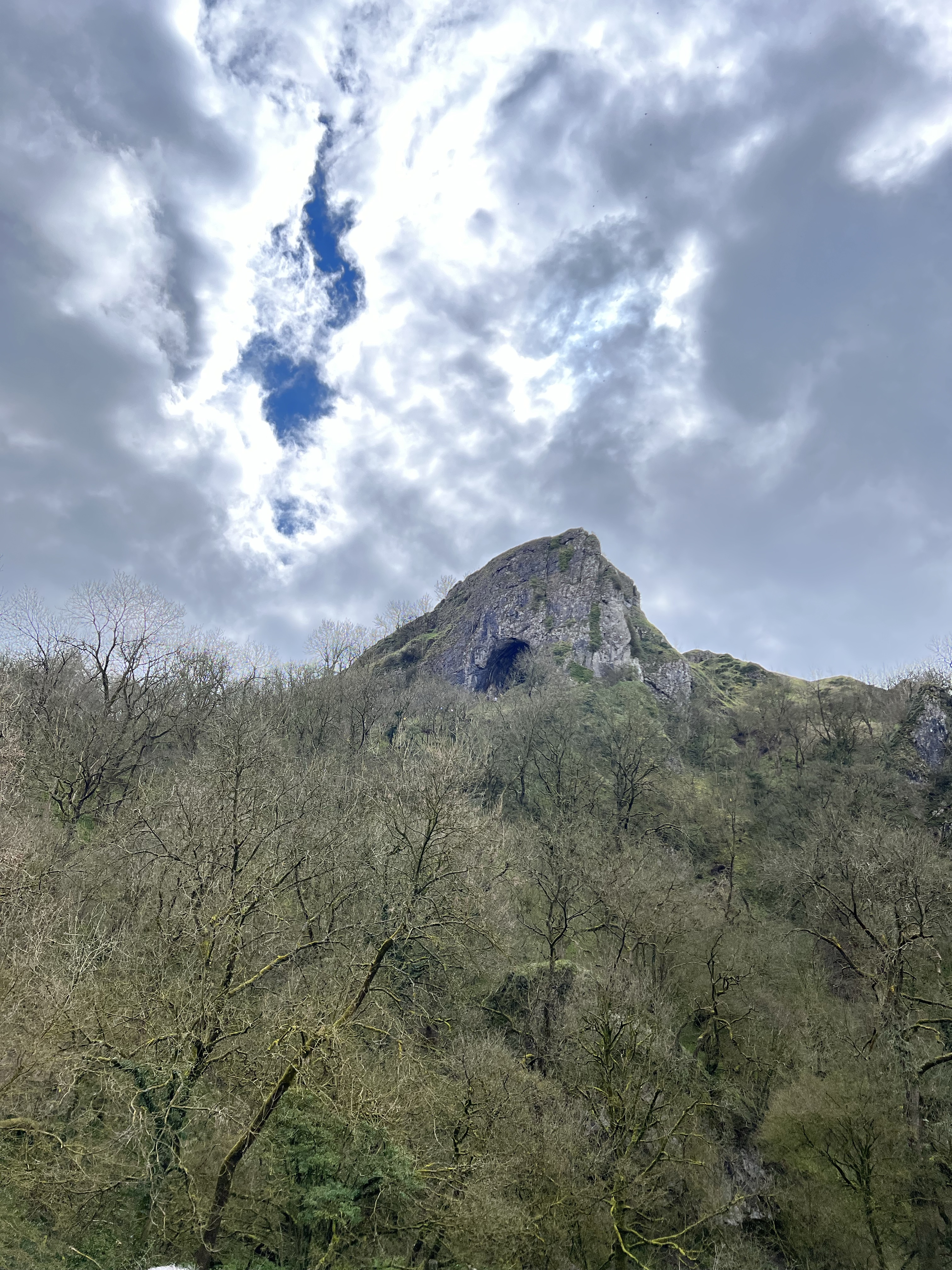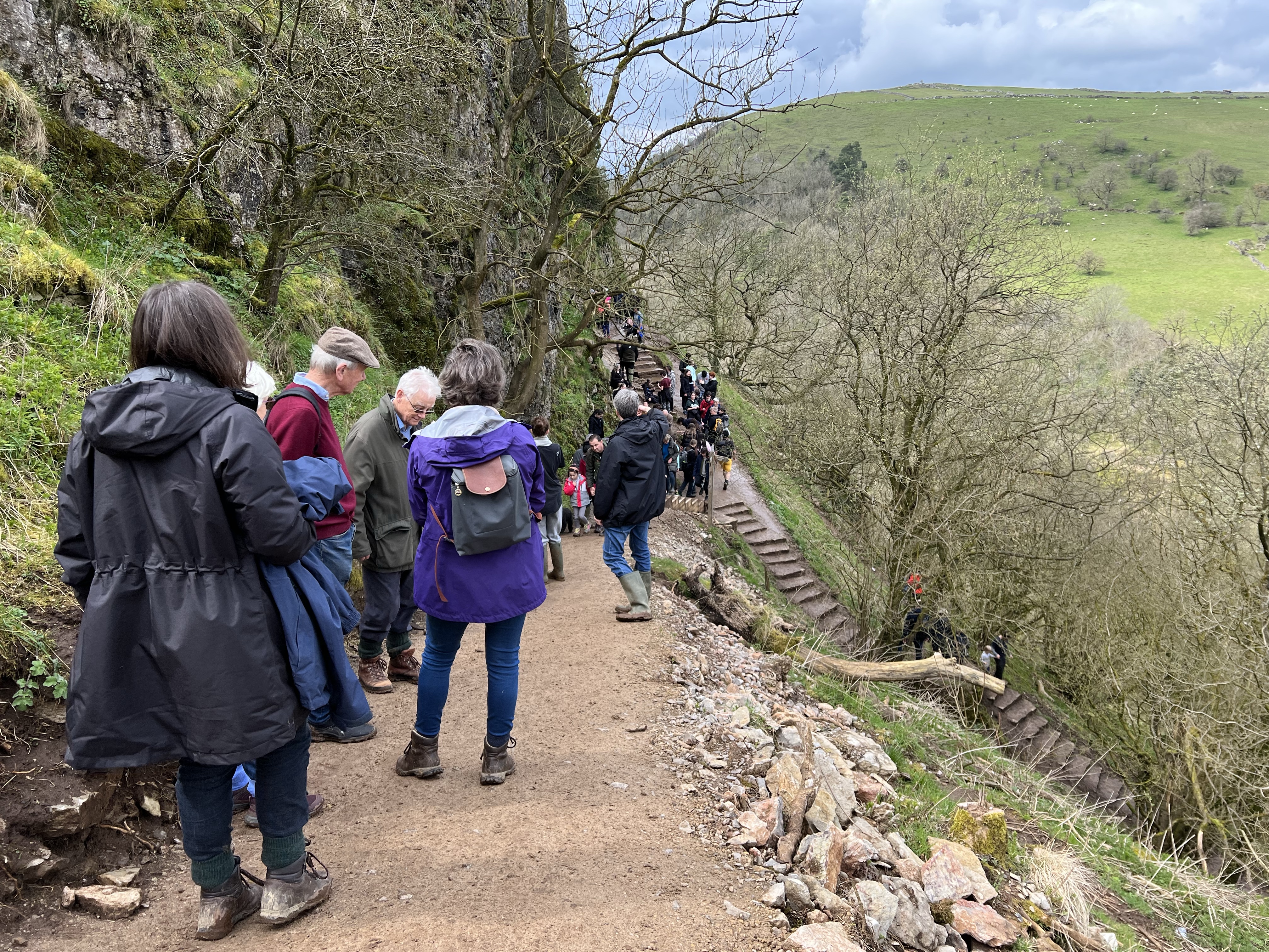 Including Thor’s Cave I’m sure. On an Easter holiday Saturday in 2023 an exercise in crowds and queasy shuddering. The cave is high in the hillside above the Manifold Valley and people crowded and queued around the sloppy mud entrance and stood peering over the edge, taking selfies on the peak above. Teeny bunched figures and no safety rail.